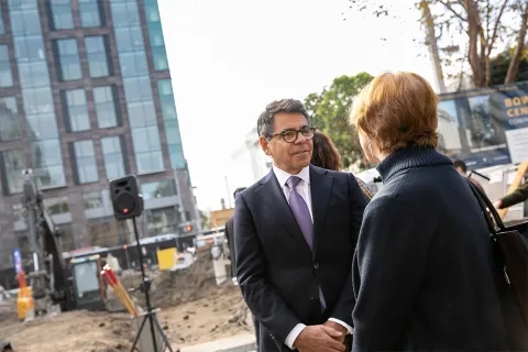 But such was the mood at 200 Van Ness Avenue that day, a mix of feelings of accomplishment, heartfelt thanks, and whimsy, signaling a milestone had been hit on multiple levels. With a successful fundraising drive, the building plans firmly inked on paper, and holes in the ground, the Bowes Center appears more a reality now than ever before.